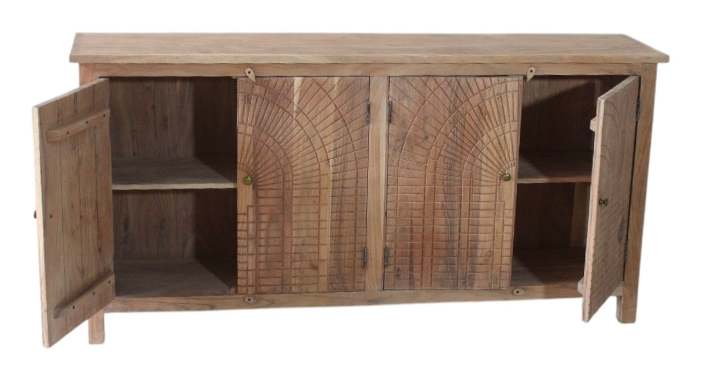 Crafted from solid wood in India, this 4-door sideboard combines timeless elegance with practical storage. Its robust construction ensures durability, while the spacious compartments offer organized space for your essentials. A refined addition to any room, it enhances your décor with understated sophistication.