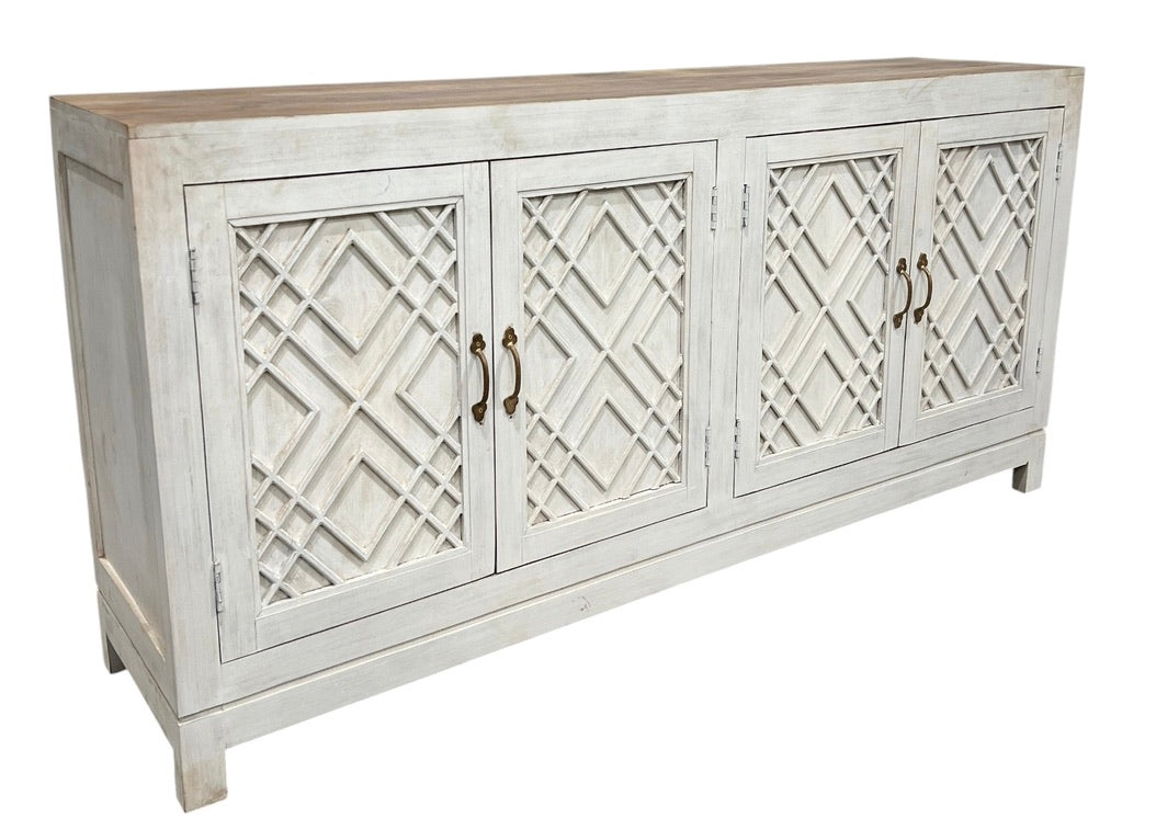 This sophisticated handmade 4-door sideboard from India features a modern design that brings elegance and practicality to your home. Crafted with attention to detail, it offers ample storage while showcasing the natural beauty of finely finished wood. Perfect for enhancing contemporary interiors, this sideboard blends artisanal quality with sleek style.