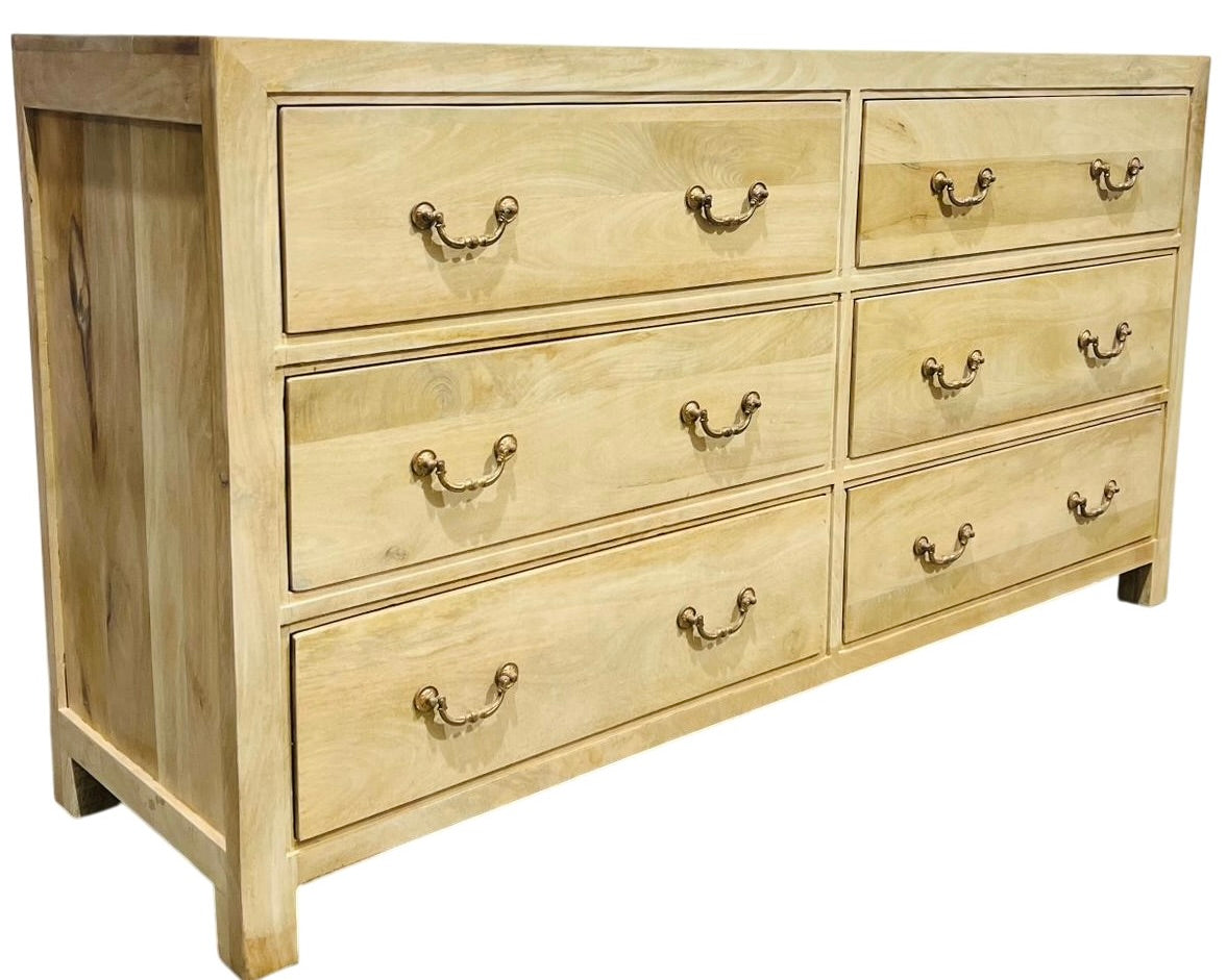 Handcrafted from premium timber by skilled artisans in India, this chest of drawers brings authentic craftsmanship and timeless elegance to any bedroom or living space. Each piece showcases natural wood grain and meticulous joinery, reflecting generations of traditional woodworking expertise. The sturdy construction ensures lasting durability, while the refined design complements both contemporary and classic interiors. A statement piece that combines functional storage with artisanal beauty.