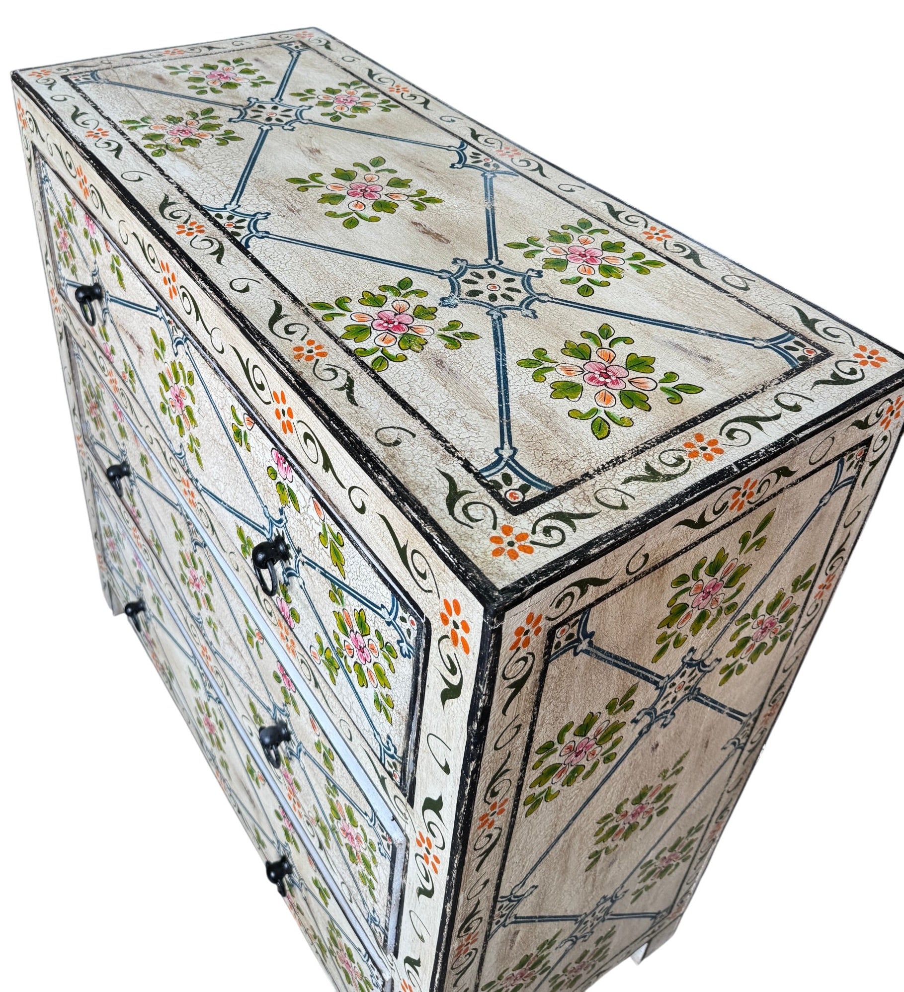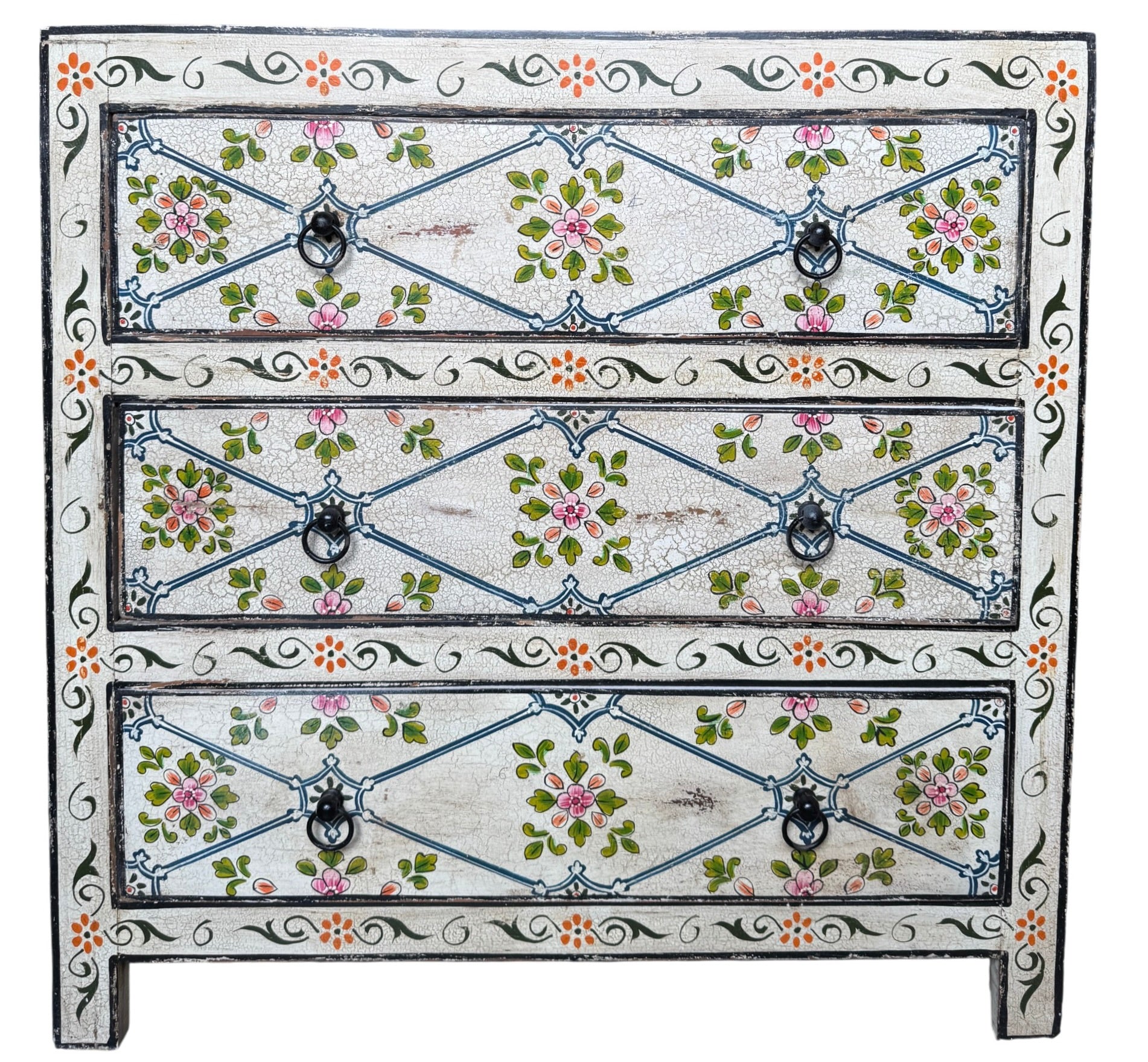 Discover the artisanal charm of this hand-painted chest of drawers, crafted with traditional Indian techniques. Each piece showcases intricate brushwork and vibrant patterns, bringing authentic cultural heritage into your home. The sturdy construction combined with exquisite hand-painted detailing creates a statement furniture piece that elevates any bedroom or living space. Perfect for those who appreciate handmade craftsmanship and timeless design.