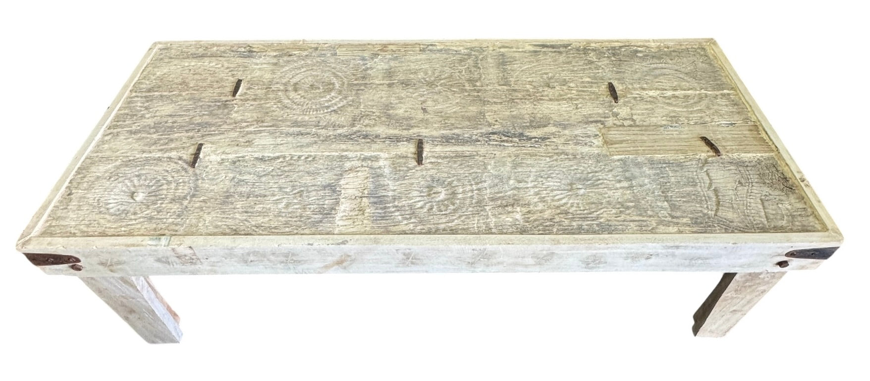 Crafted from an authentic reclaimed door +200 years old sourced from Nagaland, India, this striking coffee table celebrates artisanal heritage and sustainable design. The bleached rustic finish reveals the wood's natural character—weathered grain, subtle patina, and time-worn details that tell a story of generations past. Each piece is entirely unique, bearing the marks of its former life as a functional architectural element. Perfect for collectors and design enthusiasts seeking conversation-starting statement furniture that honours traditional craftsmanship while adding warmth and authenticity to contemporary interiors.