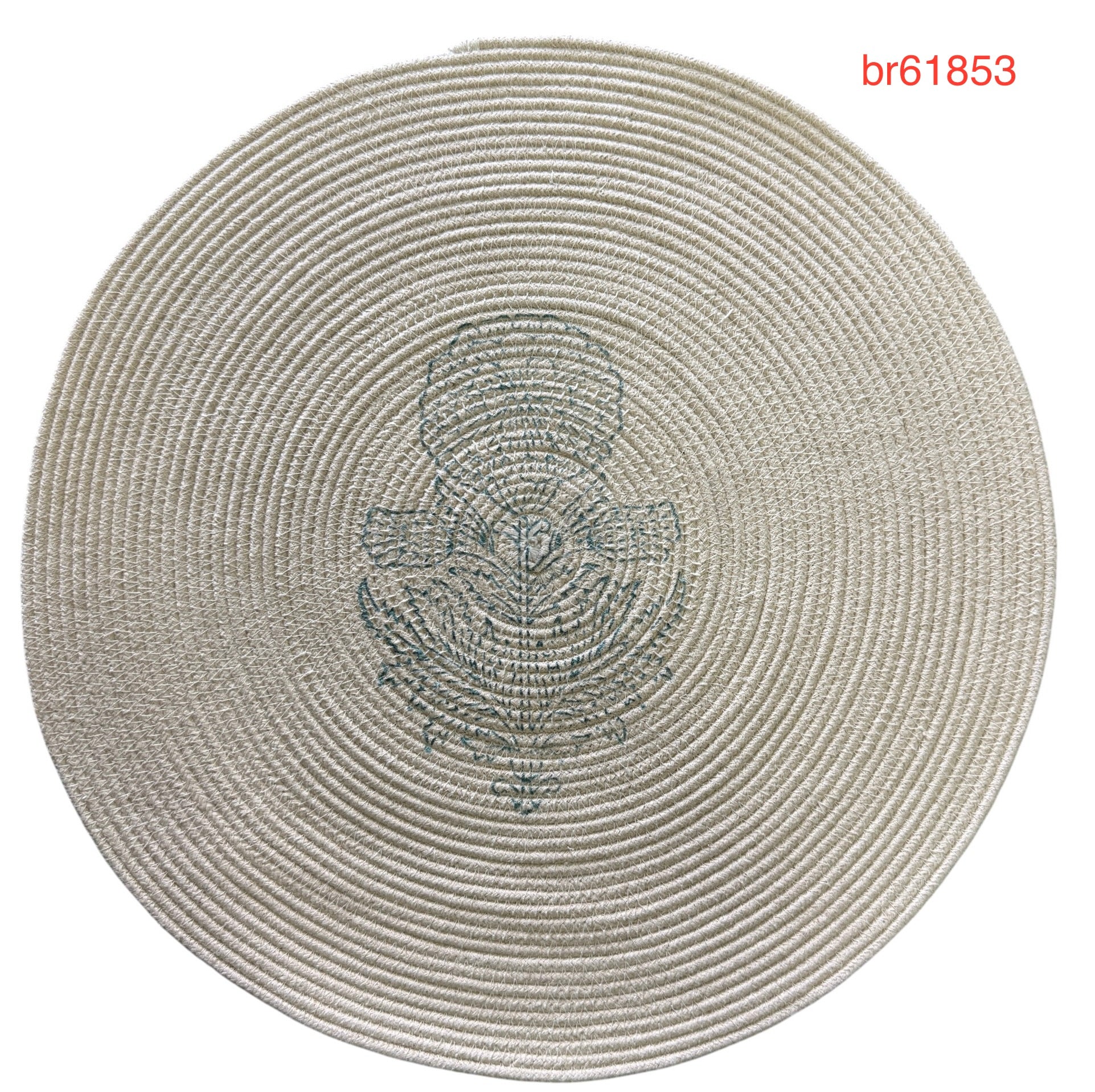 Handcrafted in India, this round placemat blends natural cotton in a thoughtfully designed piece. Each mat showcases the artistry of traditional textile techniques, bringing warmth and texture to your dining table. The durable construction withstands everyday use while the neutral tones complement any table setting. Perfect for adding an authentic, globally-inspired touch to your home.