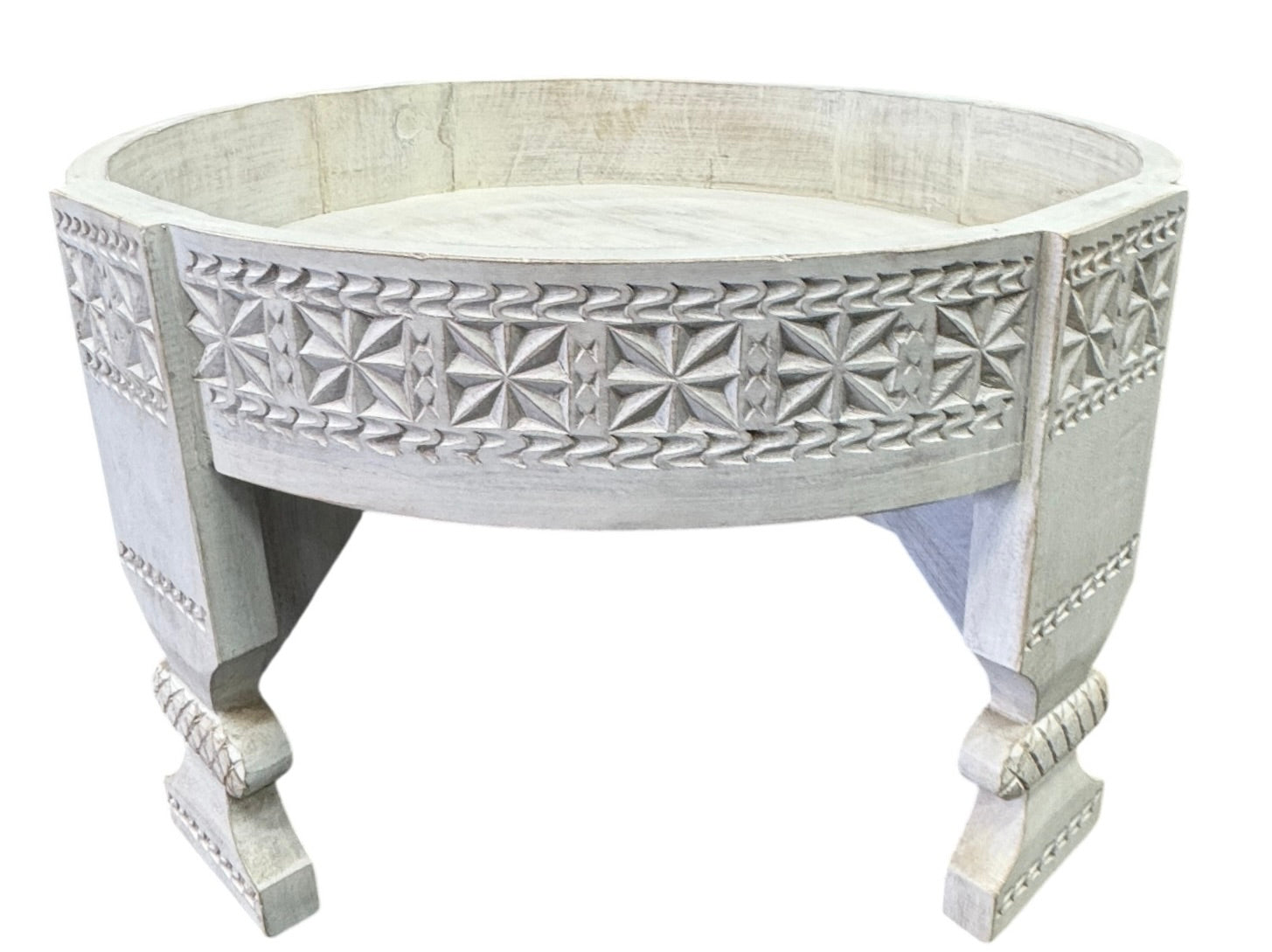 This hand-carved grinder stool from India beautifully merges traditional craftsmanship with versatile functionality. Crafted with intricate detail, it serves elegantly as both a striking coffee table and a unique seating option. Its artisanal design adds an element of cultural sophistication to any living space, making it a refined centerpiece that blends heritage and contemporary style.
