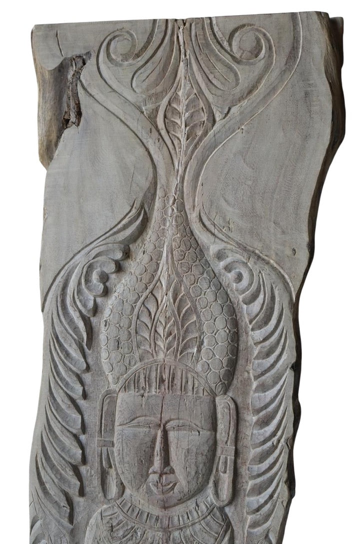 Hand-carved from a single piece of timber, this striking Buddha wall art originates from Nagaland, India, where artisans have perfected the craft across generations. Each sculpture showcases the natural grain and warmth of the wood, creating a serene focal point that brings contemplative elegance to any space. The meticulous hand-carving reveals fine detail and spiritual reverence, making this a distinctive statement piece for those who appreciate authentic craftsmanship and cultural artistry.
