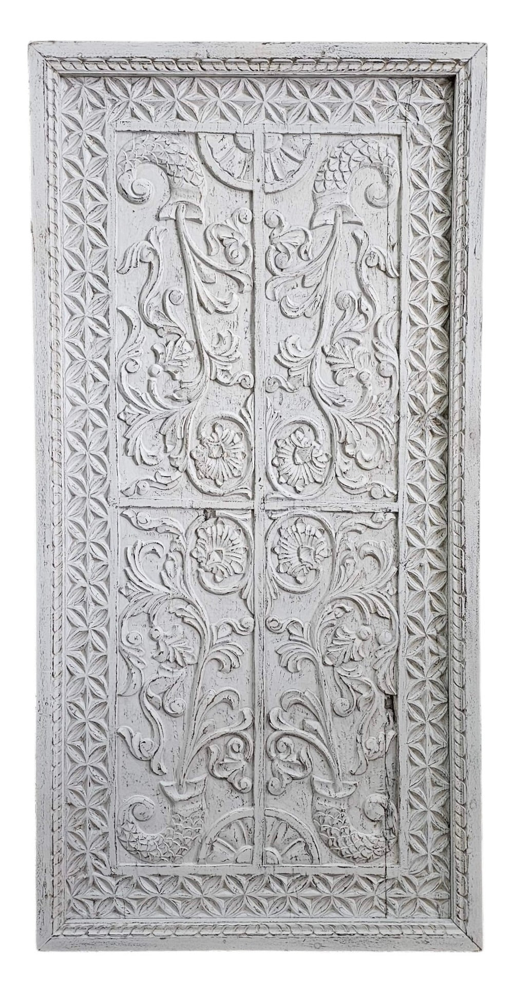 Elevate your interior with this sophisticated white door panel from India, designed to serve as a distinctive wall decor piece. Its intricate craftsmanship and clean white finish bring a touch of elegance and cultural charm, making it a refined focal point that complements both modern and traditional spaces. Ideal for adding texture and character, this panel transforms your walls into a gallery of timeless artistry.