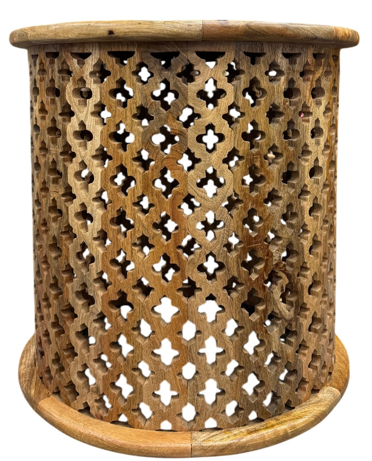 Handcrafted from solid mango wood, this striking round side table brings warmth and character to any room. Its generous size makes it perfect for displaying décor or holding drinks and books beside your sofa. The natural grain patterns and rich honey tones showcase the wood's authentic beauty, while the sturdy construction ensures lasting durability. A versatile piece that complements both contemporary and traditional interiors, this Indian-made table adds organic elegance to your home.