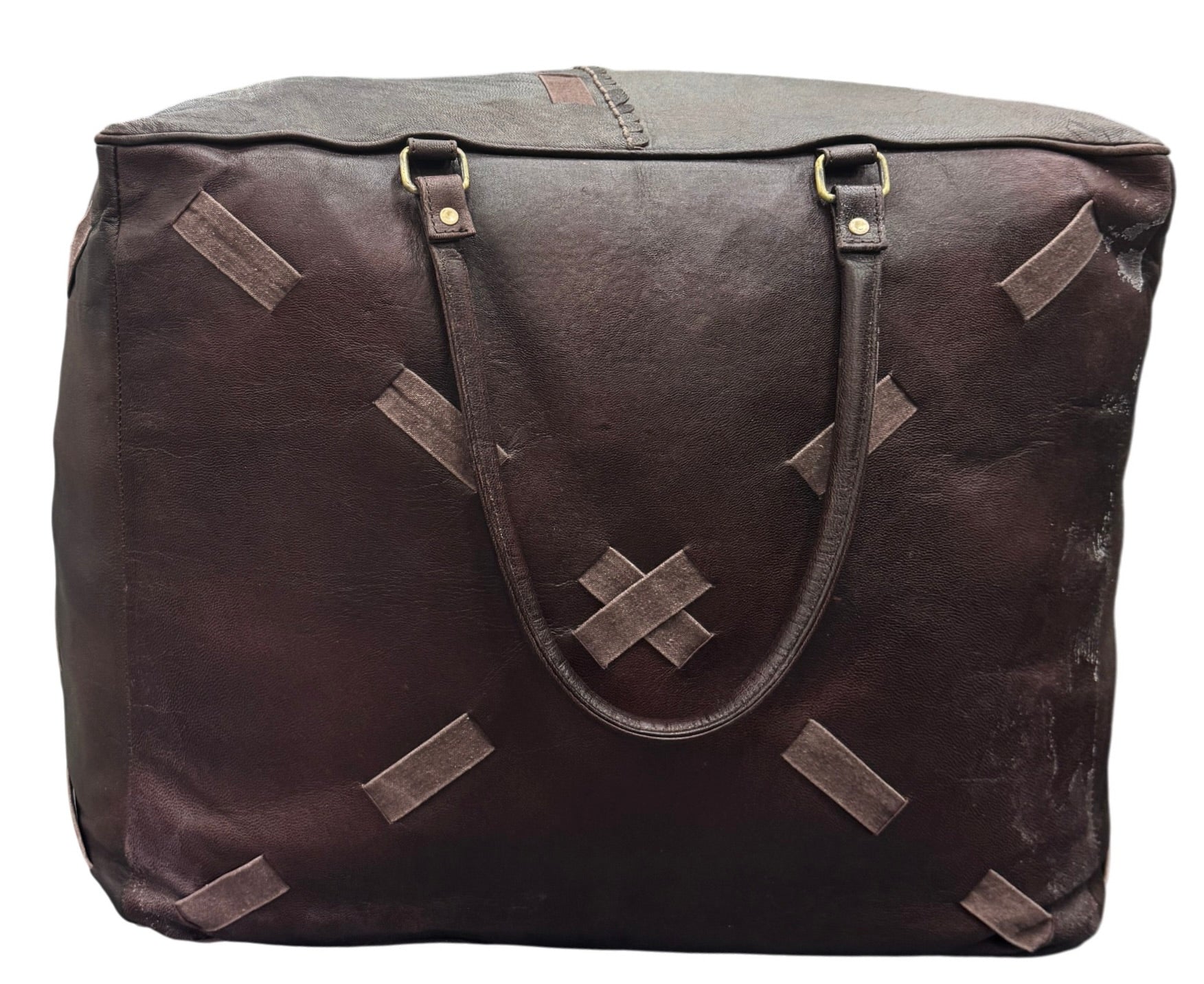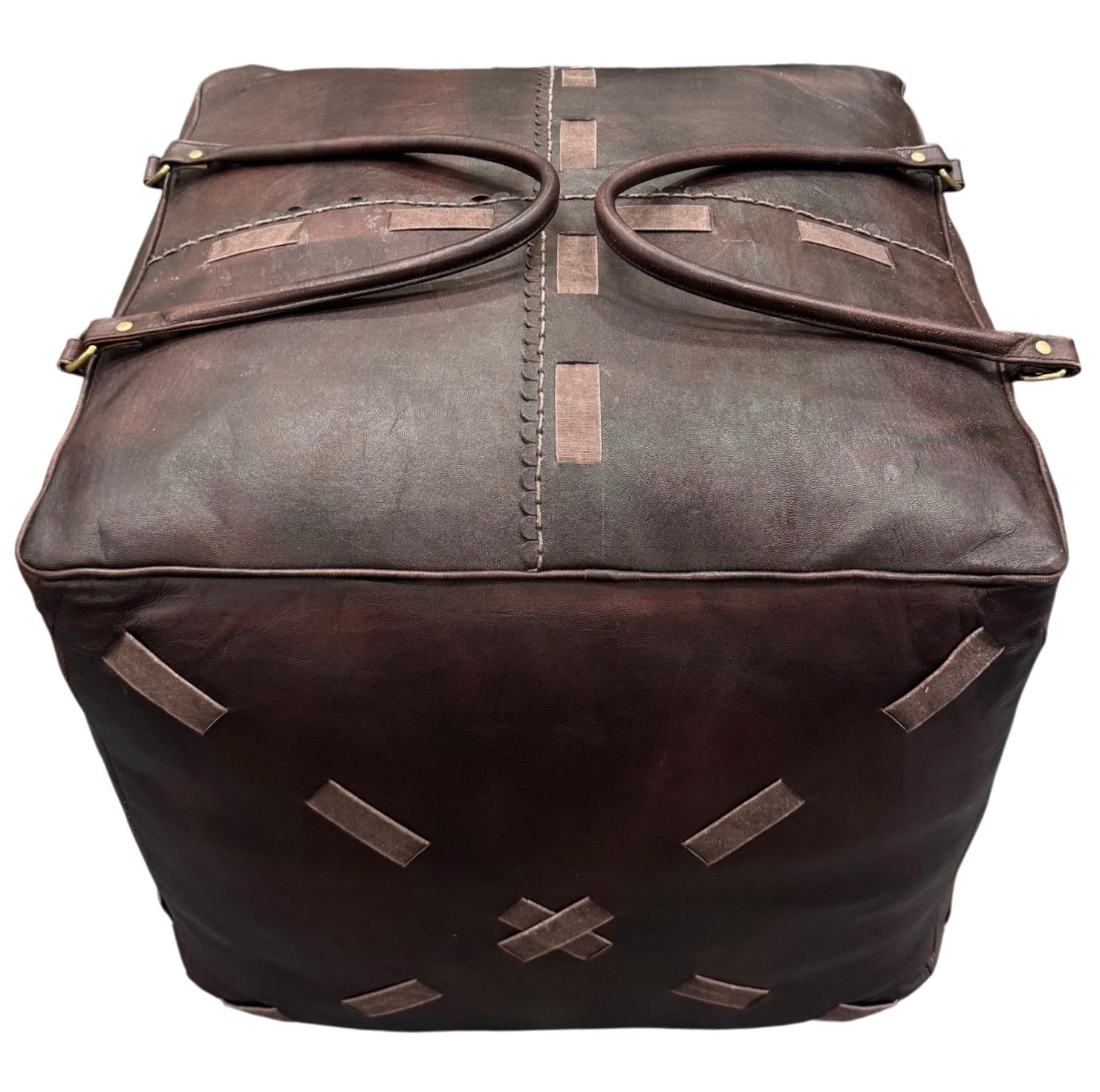Elevate your living space with this premium large leather ottoman, crafted in India to blend luxury and functionality. Generously sized and featuring sturdy handles, it offers versatile use as a footrest, extra seating, or a stylish centerpiece. The high-quality leather ensures durability while adding a rich, sophisticated touch to any room. Perfect for those who appreciate refined craftsmanship and timeless design.