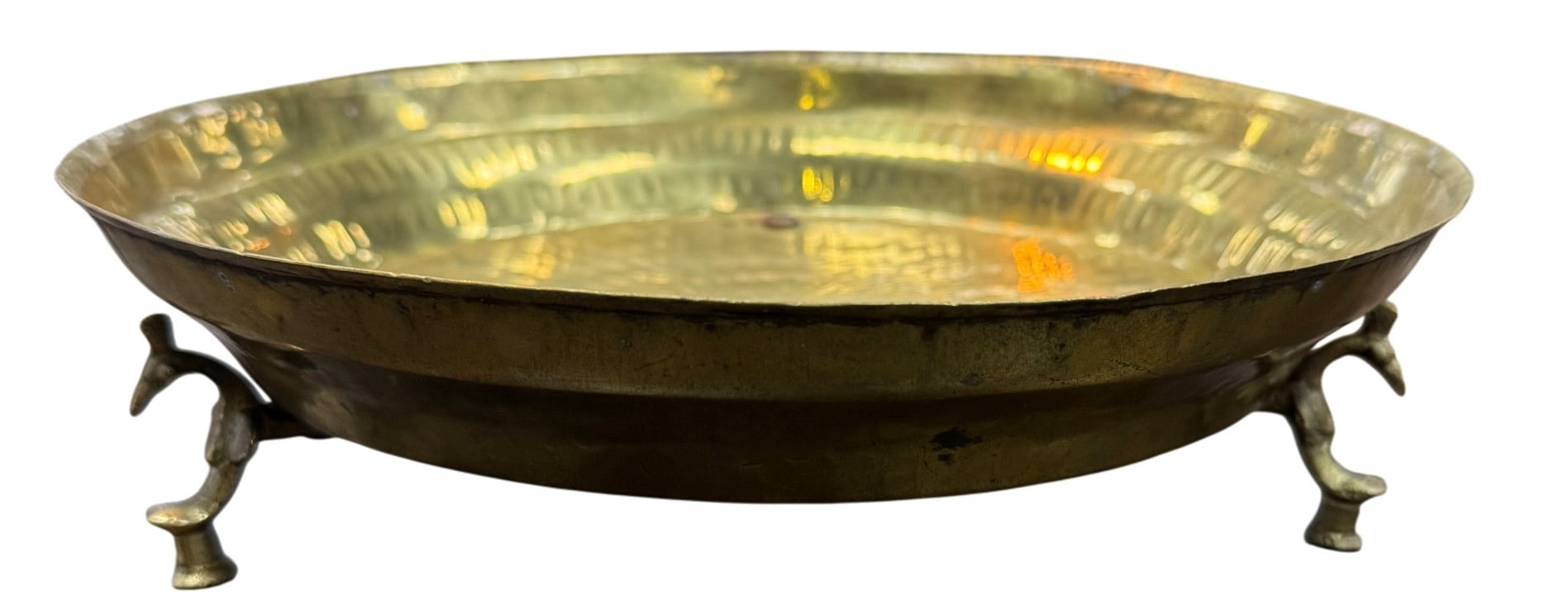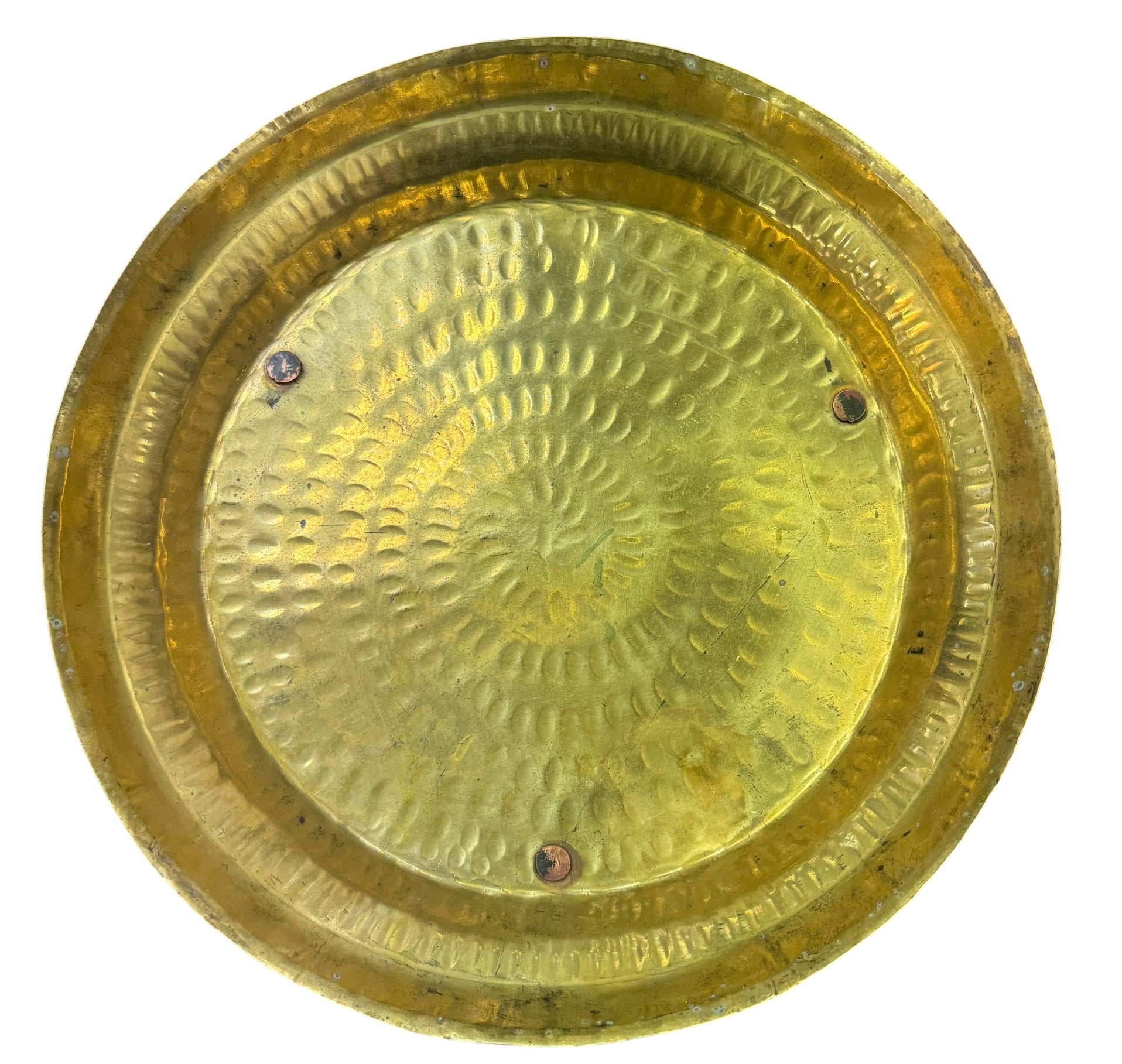 Discover the artisanal charm of this vintage brass parat, meticulously hand-hammered by skilled craftspeople in South India. Each piece showcases authentic craftsmanship with distinctive surface variations that reflect its handmade heritage. The warm, lustrous brass patina develops character over time, making it a timeless addition to curated interiors. Perfect for collectors seeking genuine, one-of-a-kind home décor that celebrates traditional metalworking techniques.